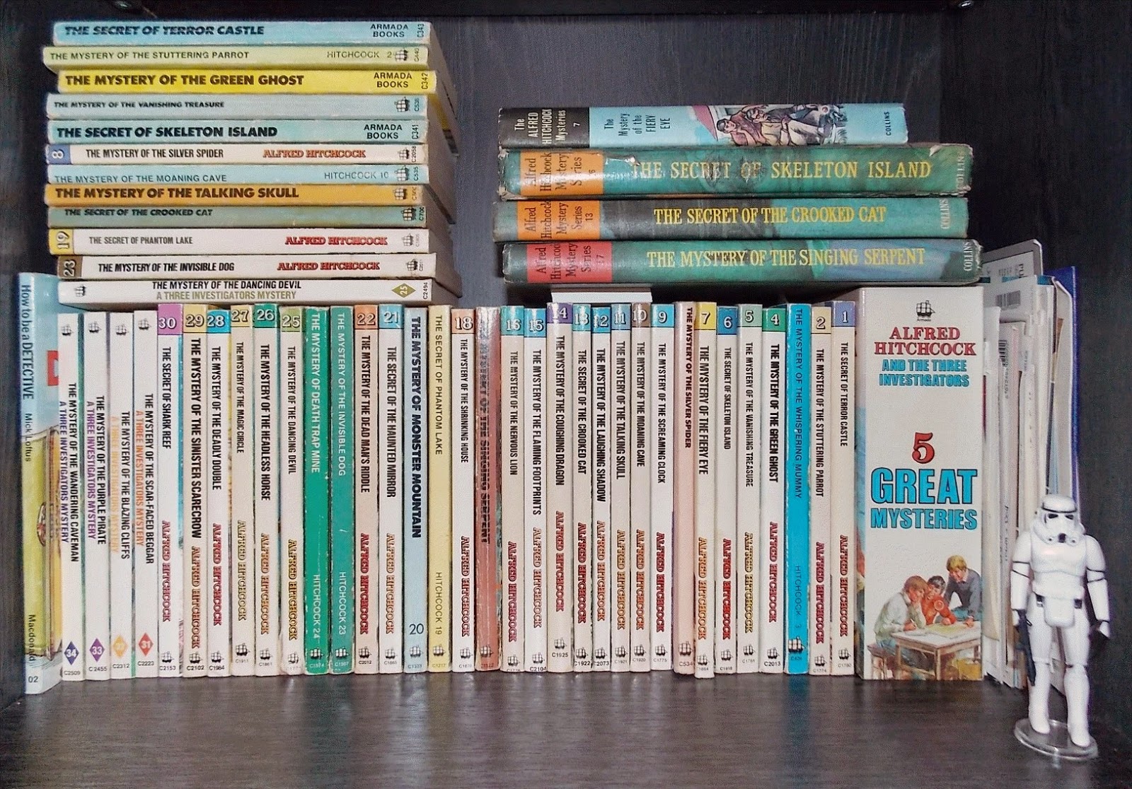 By the by, I still have that original hardback copy of “The Secret Of Skeleton Island” - a bit beaten up now but standing strong. I held onto my full collection and do still read it - in fact, from 2008 to 2010 I re-read all of the first 30 books and set up a dedicated review blog (which you can find here). After deciding to try and collect the whole series in format b (which I achieved, as I blogged about here) , I have started collecting the books in format a, as well as the Collins hardback editions. For the 50th anniversary year, I’m in the process of re-reading my favourites to try and determine my all-time Top 10, quite safe in the knowledge the list is surely subject to change, but enjoying both the reading and reviewing. As it is, I have written fairly extensively on the series and all of my blogged Three Investigator posts can be found at this link.